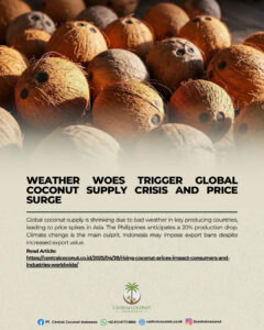 The global supply of whole coconuts is increasingly constrained due to adverse weather conditions affecting several major producing nations of this commodity. The surge in